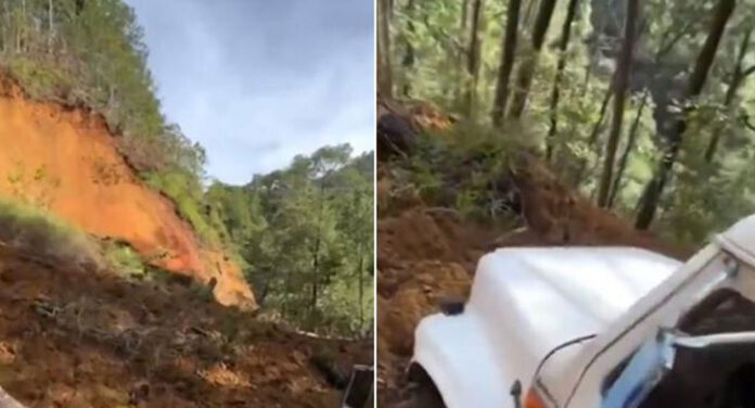 El hecho fue captado en video y rápidamente se viralizó en redes sociales. En las imágenes se observa el momento exacto en que un cerro colapsa sobre la vía, cubriendo por completo la unidad y bloqueando el paso vehicular.