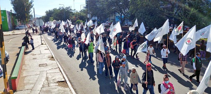 Decenas de integrantes de la organización 23 de Octubre salieron en marcha a las 8:00 horas desde el crucero de las antiguas instalaciones del Instituto Estatal de Educación Pública de Oaxaca (IEEPO) hasta el Zócalo de la capital.