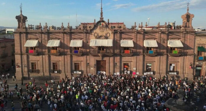 Michoacán.-Un grupo de manifestantes irrumpió y vandalizó el Palacio de Gobierno de Michoacán tras una marcha en protesta por el asesinato de Carlos Manzo Rodríguez, alcalde independiente de Uruapan.