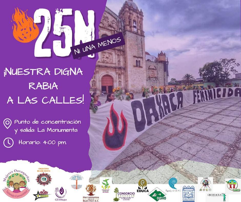 “En Oaxaca la primavera de Salomón Jara sigue sin llegar a las niñas, niños, mujeres indígenas, negras, trans, defensoras del territorio, que cada día están en riesgo”, acusaron activistas y organizaciones no gubernamentales al convocar a una marcha el próximo 25 de noviembre, en el Día Internacional para la Eliminación de la Violencia contra las Mujeres.