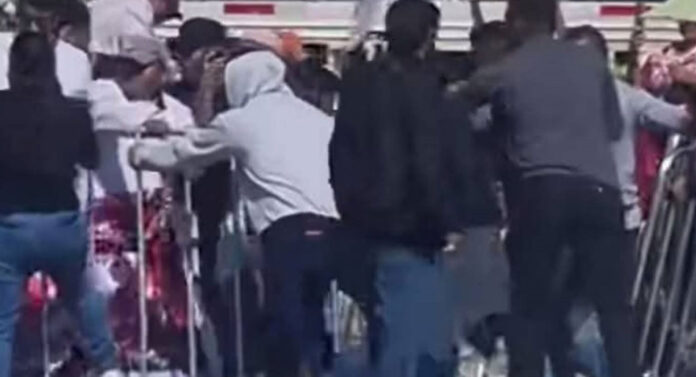 Durante el momento más álgido de la protesta los sindicalistas retiraron vallas que habían sido colocadas para delimitar el perímetro del evento, en pleno discurso de Sheinbaum Pardo.