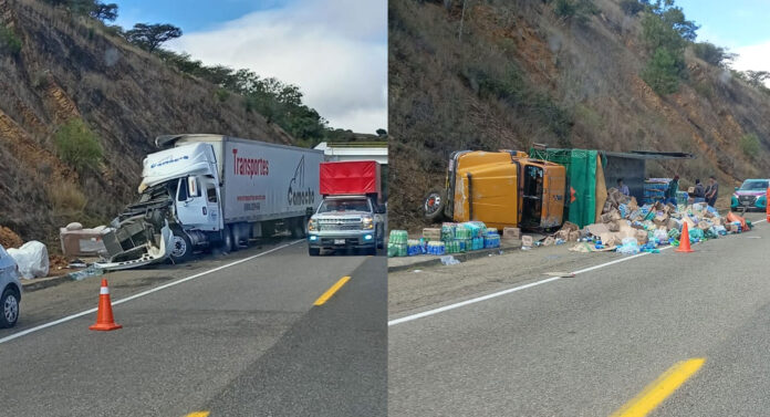 Un aparatoso accidente se registró esta mañana en el kilómetro 193 de la autopista Cuacnopalan–Oaxaca, en el tramo Nochixtlán–Huitzo, donde un tráiler y un camión tipo torton chocaron, provocando la volcadura de este último.