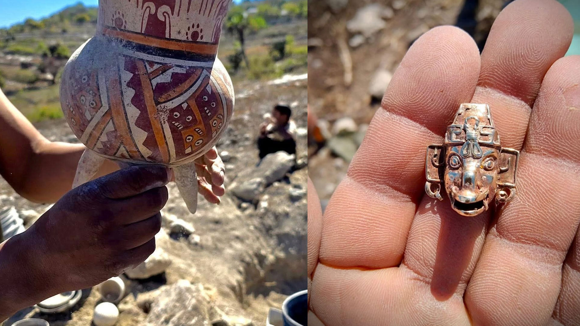 En redes sociales se divulgaron imágenes de decenas de vestigios como piezas de oro, vasijas y posibles restos funerarios, por lo que pobladores del lugar calificaron el hecho como el hallazgo “de un tesoro” y sostuvieron que podría tratarse de una tumba prehispánica de origen mixteco de la época clásica.