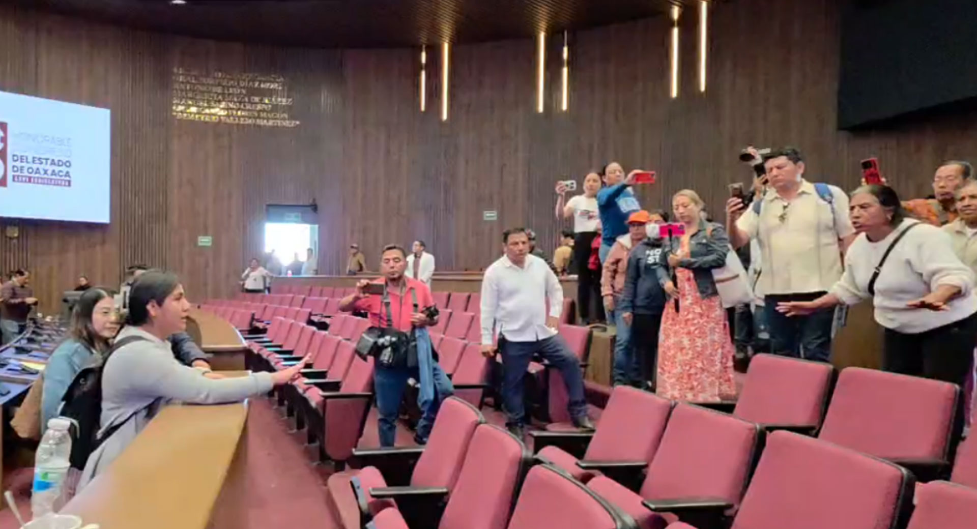 La decisión legislativa generó inconformidad entre habitantes de San Agustín Amatengo, quienes previamente habían acusado a la alcaldesa de presuntos actos de corrupción y deficiencias administrativas. Tras conocer el resolutivo, más de 80 personas bloquearon los accesos al Congreso, retuvieron a un funcionario municipal y posteriormente ingresaron por la fuerza al edificio.