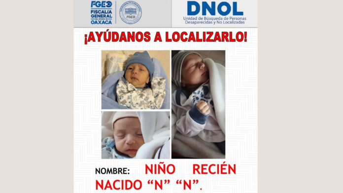 Oaxaca. La Fiscalía de Oaxaca emitió una Alerta Amber y una ficha de búsqueda para encontrar a un bebé de un mes y 24 días de nacido, cuyo paradero se ignora desde el pasado 23 de marzo.